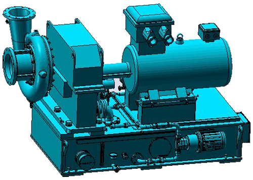 MVR離心蒸汽壓縮機采用整體組成撬結構型式。本體主要由壓縮機(定子部件、轉動部件、密封等組成)、齒輪增速箱、驅動系統(tǒng)(變頻電機+聯(lián)軸器及其護罩)、潤滑油路兼底座系統(tǒng)等組成。