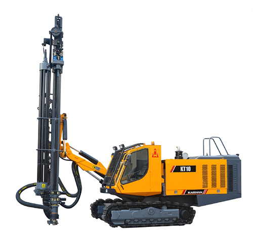 KT10型一體式潛孔鉆車以康明斯國三柴油機(jī)為單一動力,通過兩端輸出的方式同時帶動螺桿壓縮系統(tǒng)和液壓傳動系統(tǒng),可鉆鑿φ90-125mm垂直、傾斜和水平孔,主要用于露天礦山和石方工程鉆鑿爆破孔和預(yù)裂孔等。鉆車配有自動接卸桿系統(tǒng)和鉆桿潤滑模塊,可實現(xiàn)單人操作,減少礦山作業(yè)人員。鉆車主操縱動作集成在一個手柄上,操作簡單,配有防卡鉆系統(tǒng),并可選配鉆孔角度和深度指示,簡化了鉆孔過程控制并改善成孔質(zhì)量。高效的集塵系統(tǒng)、寬敞的駕駛室、大功率冷暖空調(diào)和優(yōu)質(zhì)的音響設(shè)備提供了優(yōu)質(zhì)的操作環(huán)境,最大限度提高操作人員工作效率。