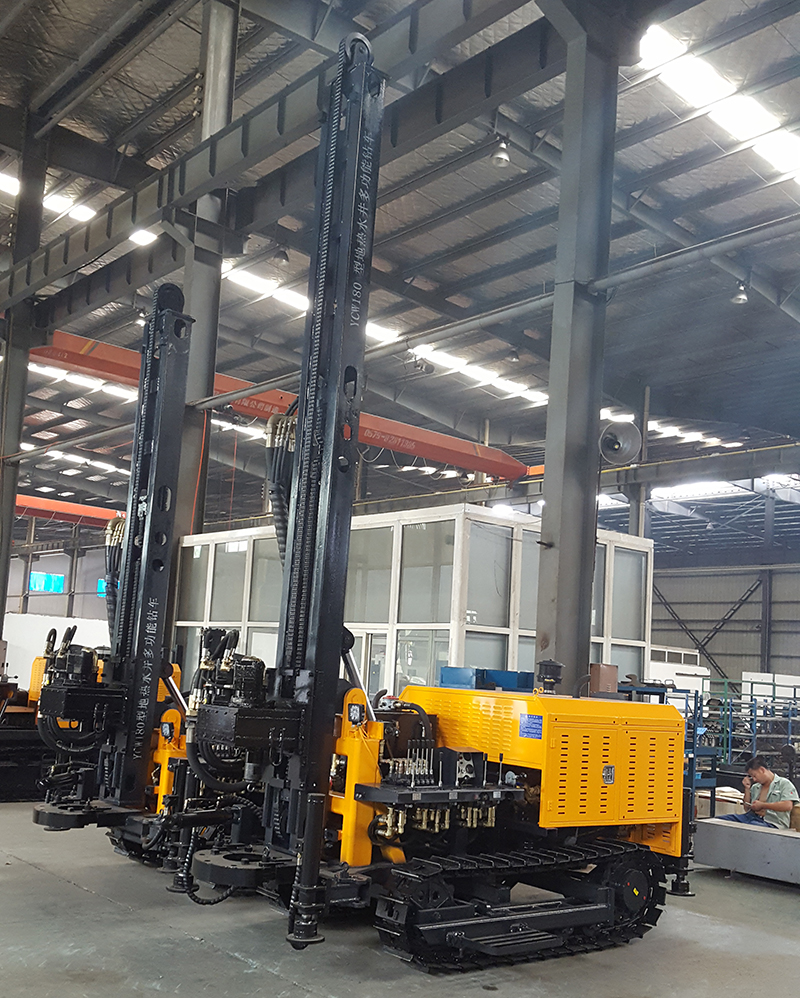 KW180/YCW180型地?zé)崴喙δ茔@車是一種輕型、高效、多功能的鉆鑿孔設(shè)備。具配備玉柴四缸國(guó)三發(fā)動(dòng)機(jī),有結(jié)構(gòu)先進(jìn)、使用方便、作業(yè)效率高、可靠耐用等特點(diǎn),廣泛適用于鉆鑿水井、農(nóng)業(yè)灌溉井、地?zé)峥照{(diào)孔及其他用途的井孔,尤其適用于山區(qū)和巖石地層的取水工程。該鉆車采用新型液壓技術(shù),配套大扭矩液壓馬達(dá)回轉(zhuǎn)以及大缸徑液壓油缸推進(jìn),大幅降低了勞動(dòng)強(qiáng)度,縮短了輔助時(shí)間,提高了施工效率和工程質(zhì)量。