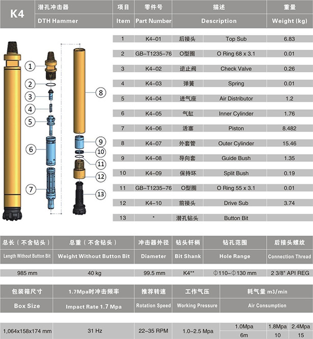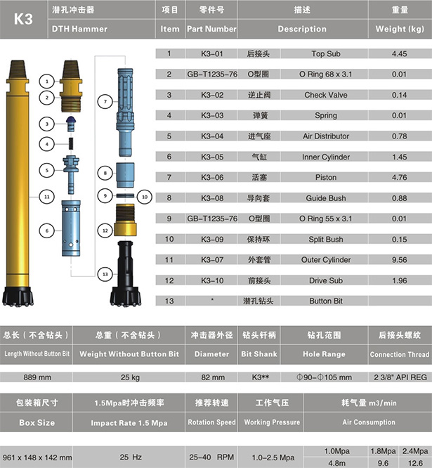 高風(fēng)壓沖擊器技術(shù)參數(shù)